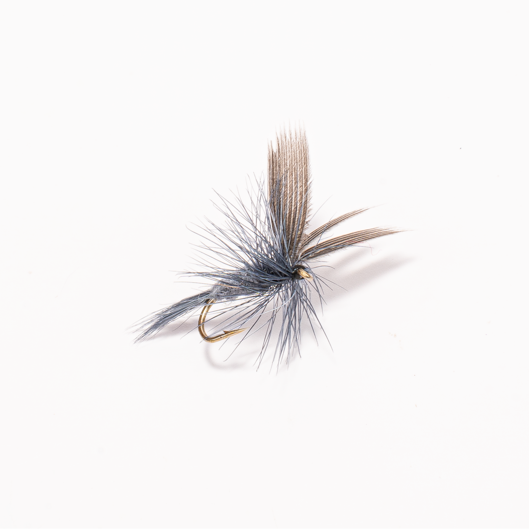 A traditional dry fly that imitates small gray or blue mayflies found on most trout waters. The slim body and upright wings create a clean, natural profile that fools selective fish. Effective in both rivers and stillwater during light mayfly hatches.