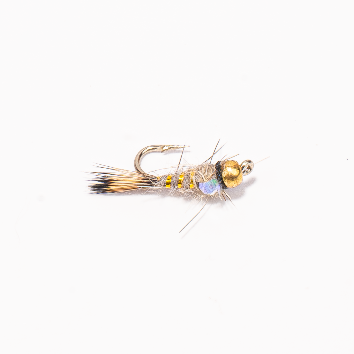A variation of the classic Hare’s Ear with a shiny flashback that catches light and attention underwater. The natural body and spiky dubbing keep it lifelike, while the flash adds just enough attraction in clear or stained water. Works in rivers, creeks, and stillwater.